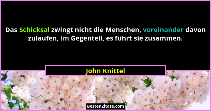 Das Schicksal zwingt nicht die Menschen, voreinander davon zulaufen, im Gegenteil, es führt sie zusammen.