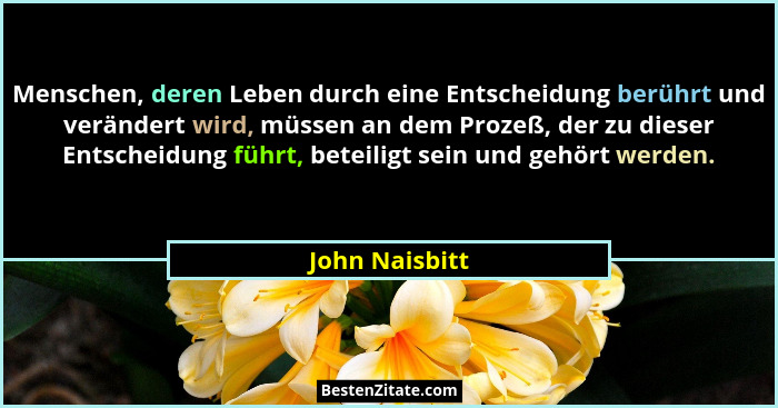 Menschen, deren Leben durch eine Entscheidung berührt und verändert wird, müssen an dem Prozeß, der zu dieser Entscheidung führt, beteiligt sein und gehört werden.