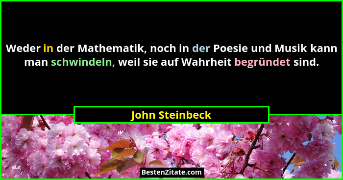 Weder in der Mathematik, noch in der Poesie und Musik kann man schwindeln, weil sie auf Wahrheit begründet sind.