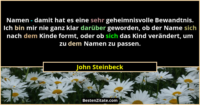 Namen - damit hat es eine sehr geheimnisvolle Bewandtnis. Ich bin mir nie ganz klar darüber geworden, ob der Name sich nach dem Kinde formt, oder ob sich das Kind verändert, um zu dem Namen zu passen.