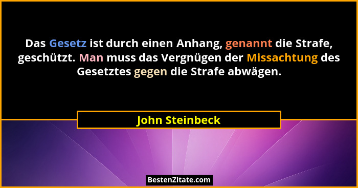 Das Gesetz ist durch einen Anhang, genannt die Strafe, geschützt. Man muss das Vergnügen der Missachtung des Gesetztes gegen die Strafe abwägen.