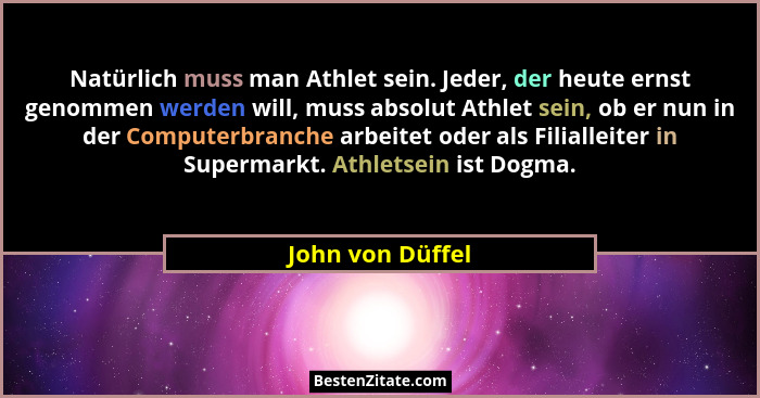 Natürlich muss man Athlet sein. Jeder, der heute ernst genommen werden will, muss absolut Athlet sein, ob er nun in der Computerbranche arbeitet oder als Filialleiter in Supermarkt. Athletsein ist Dogma.