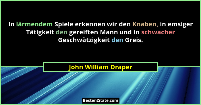 In lärmendem Spiele erkennen wir den Knaben, in emsiger Tätigkeit den gereiften Mann und in schwacher Geschwätzigkeit den Greis.