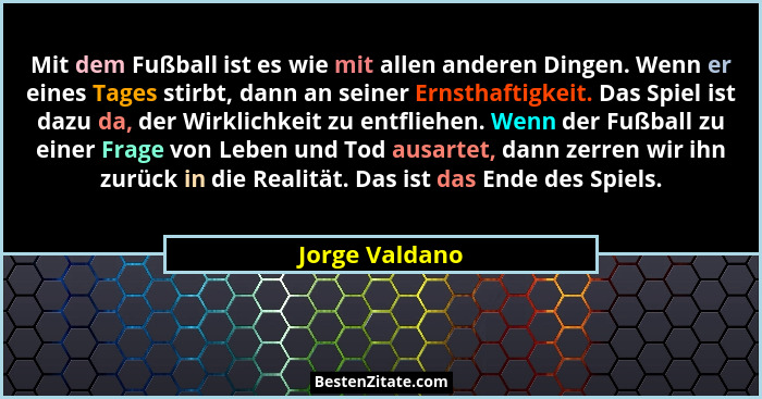 Mit dem Fußball ist es wie mit allen anderen Dingen. Wenn er eines Tages stirbt, dann an seiner Ernsthaftigkeit. Das Spiel ist dazu da, der Wirklichkeit zu entfliehen. Wenn der Fußball zu einer Frage von Leben und Tod ausartet, dann zerren wir ihn zurück in die Realität. Das ist das Ende des Spiels.