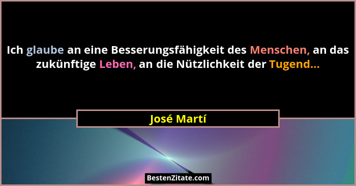Ich glaube an eine Besserungsfähigkeit des Menschen, an das zukünftige Leben, an die Nützlichkeit der Tugend...