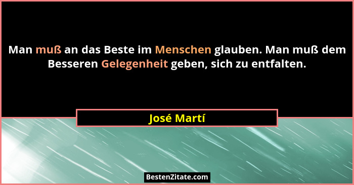 Man muß an das Beste im Menschen glauben. Man muß dem Besseren Gelegenheit geben, sich zu entfalten.