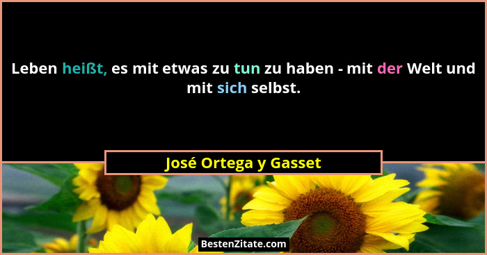 Leben heißt, es mit etwas zu tun zu haben - mit der Welt und mit sich selbst.