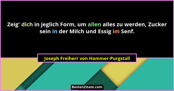 Zeig' dich in jeglich Form, um allen alles zu werden, Zucker sein in der Milch und Essig im Senf.