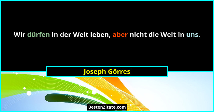 Wir dürfen in der Welt leben, aber nicht die Welt in uns.