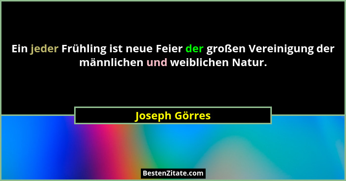 Ein jeder Frühling ist neue Feier der großen Vereinigung der männlichen und weiblichen Natur.