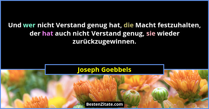 Und wer nicht Verstand genug hat, die Macht festzuhalten, der hat auch nicht Verstand genug, sie wieder zurückzugewinnen.