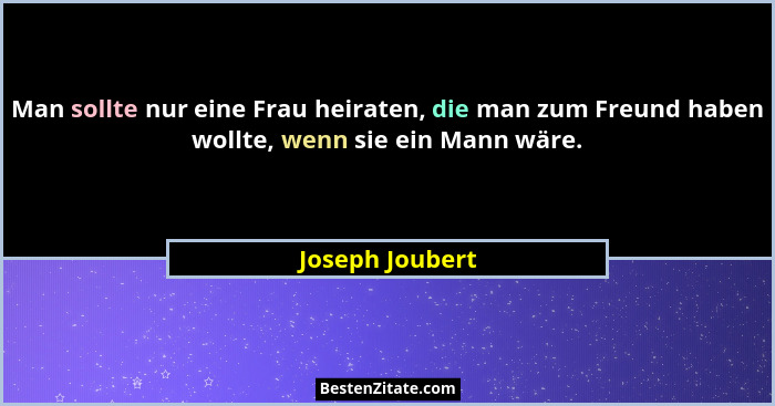 Man sollte nur eine Frau heiraten, die man zum Freund haben wollte, wenn sie ein Mann wäre.