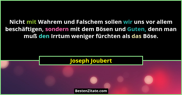 Nicht mit Wahrem und Falschem sollen wir uns vor allem beschäftigen, sondern mit dem Bösen und Guten, denn man muß den Irrtum weniger fürchten als das Böse.