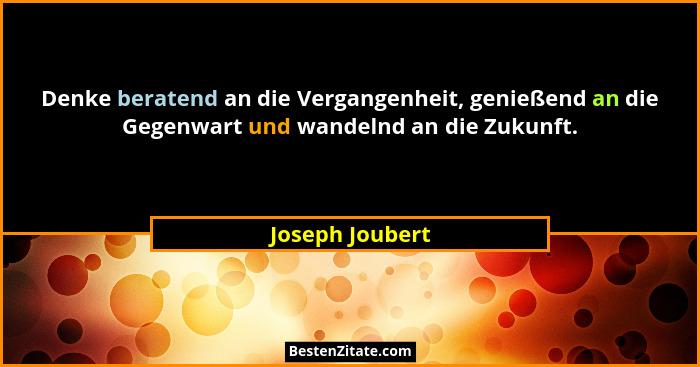 Denke beratend an die Vergangenheit, genießend an die Gegenwart und wandelnd an die Zukunft.