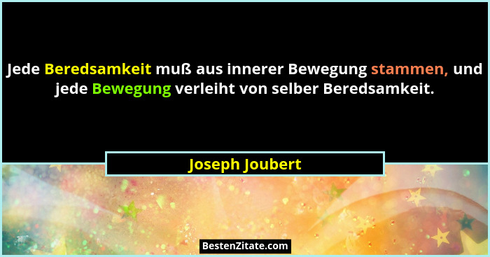Jede Beredsamkeit muß aus innerer Bewegung stammen, und jede Bewegung verleiht von selber Beredsamkeit.