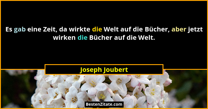 Es gab eine Zeit, da wirkte die Welt auf die Bücher, aber jetzt wirken die Bücher auf die Welt.