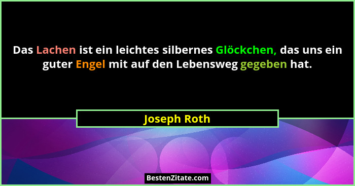 Das Lachen ist ein leichtes silbernes Glöckchen, das uns ein guter Engel mit auf den Lebensweg gegeben hat.