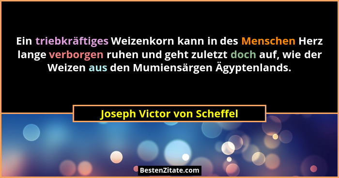 Ein triebkräftiges Weizenkorn kann in des Menschen Herz lange verborgen ruhen und geht zuletzt doch auf, wie der Weizen aus den Mumiensärgen Ägyptenlands.