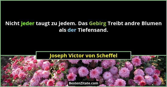 Nicht jeder taugt zu jedem. Das Gebirg Treibt andre Blumen als der Tiefensand.