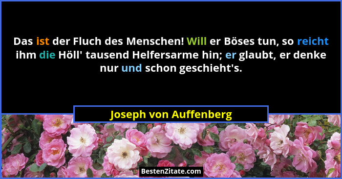 Das ist der Fluch des Menschen! Will er Böses tun, so reicht ihm die Höll' tausend Helfersarme hin; er glaubt, er denke nur und schon geschieht's.