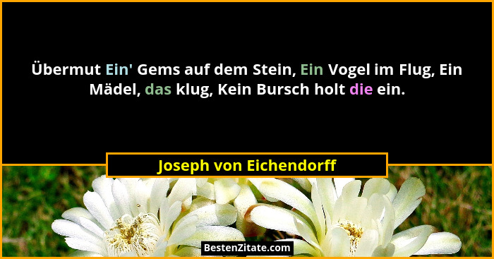 Übermut Ein' Gems auf dem Stein, Ein Vogel im Flug, Ein Mädel, das klug, Kein Bursch holt die ein.
