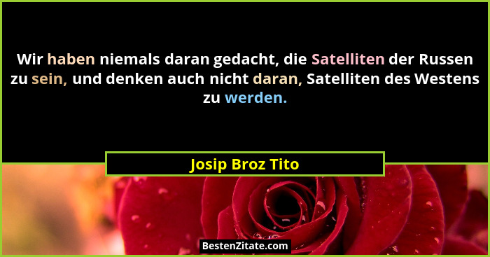 Wir haben niemals daran gedacht, die Satelliten der Russen zu sein, und denken auch nicht daran, Satelliten des Westens zu werden.