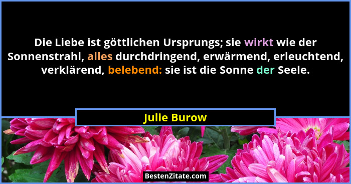 Die Liebe ist göttlichen Ursprungs; sie wirkt wie der Sonnenstrahl, alles durchdringend, erwärmend, erleuchtend, verklärend, belebend: sie ist die Sonne der Seele.
