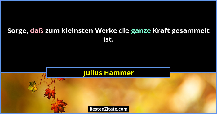 Sorge, daß zum kleinsten Werke die ganze Kraft gesammelt ist.