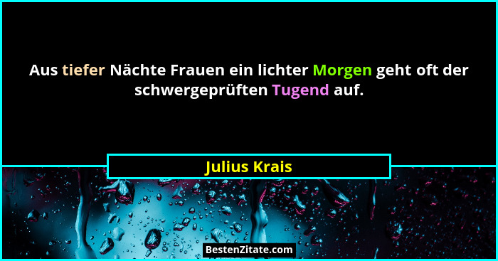 Aus tiefer Nächte Frauen ein lichter Morgen geht oft der schwergeprüften Tugend auf.