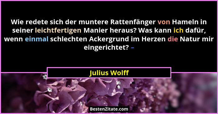 Wie redete sich der muntere Rattenfänger von Hameln in seiner leichtfertigen Manier heraus? Was kann ich dafür, wenn einmal schlechten Ackergrund im Herzen die Natur mir eingerichtet? –