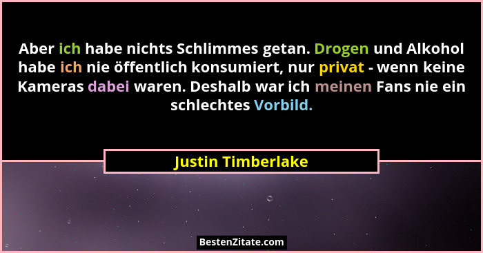 Aber ich habe nichts Schlimmes getan. Drogen und Alkohol habe ich nie öffentlich konsumiert, nur privat - wenn keine Kameras dabei waren. Deshalb war ich meinen Fans nie ein schlechtes Vorbild.