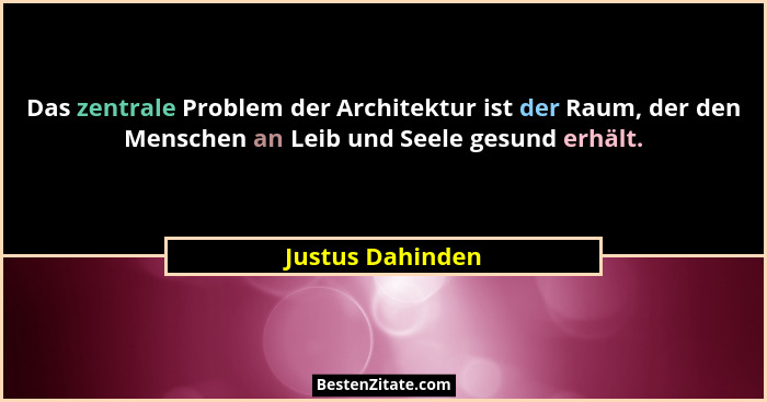 Das zentrale Problem der Architektur ist der Raum, der den Menschen an Leib und Seele gesund erhält.