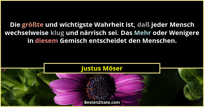 Die größte und wichtigste Wahrheit ist, daß jeder Mensch wechselweise klug und närrisch sei. Das Mehr oder Wenigere in diesem Gemisch entscheidet den Menschen.