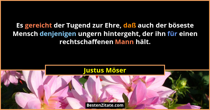 Es gereicht der Tugend zur Ehre, daß auch der böseste Mensch denjenigen ungern hintergeht, der ihn für einen rechtschaffenen Mann hält.