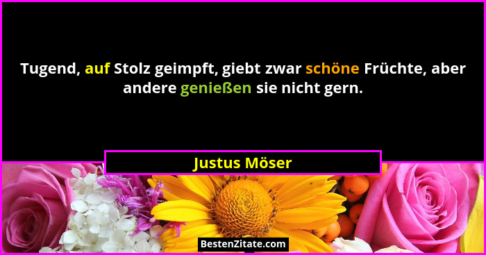 Tugend, auf Stolz geimpft, giebt zwar schöne Früchte, aber andere genießen sie nicht gern.