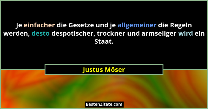 Je einfacher die Gesetze und je allgemeiner die Regeln werden, desto despotischer, trockner und armseliger wird ein Staat.