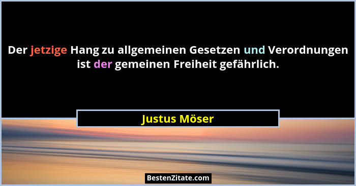 Der jetzige Hang zu allgemeinen Gesetzen und Verordnungen ist der gemeinen Freiheit gefährlich.