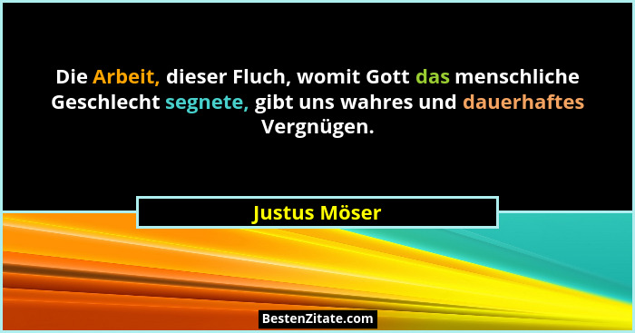 Die Arbeit, dieser Fluch, womit Gott das menschliche Geschlecht segnete, gibt uns wahres und dauerhaftes Vergnügen.