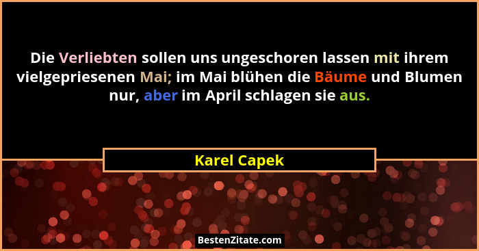 Die Verliebten sollen uns ungeschoren lassen mit ihrem vielgepriesenen Mai; im Mai blühen die Bäume und Blumen nur, aber im April schlagen sie aus.