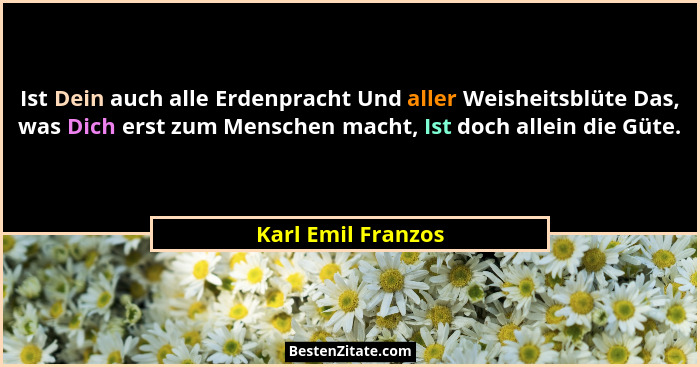 Ist Dein auch alle Erdenpracht Und aller Weisheitsblüte Das, was Dich erst zum Menschen macht, Ist doch allein die Güte.