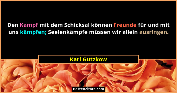 Den Kampf mit dem Schicksal können Freunde für und mit uns kämpfen; Seelenkämpfe müssen wir allein ausringen.