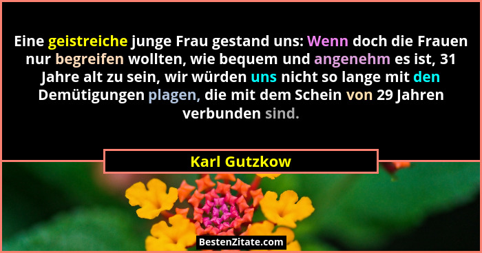 Eine geistreiche junge Frau gestand uns: Wenn doch die Frauen nur begreifen wollten, wie bequem und angenehm es ist, 31 Jahre alt zu sein, wir würden uns nicht so lange mit den Demütigungen plagen, die mit dem Schein von 29 Jahren verbunden sind.