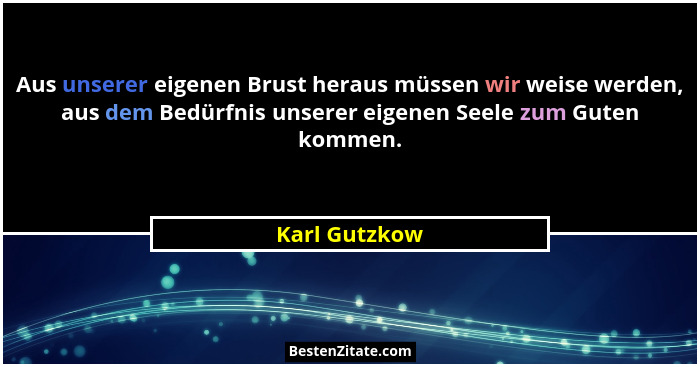 Aus unserer eigenen Brust heraus müssen wir weise werden, aus dem Bedürfnis unserer eigenen Seele zum Guten kommen.