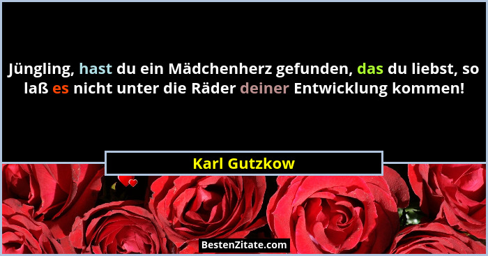 Jüngling, hast du ein Mädchenherz gefunden, das du liebst, so laß es nicht unter die Räder deiner Entwicklung kommen!
