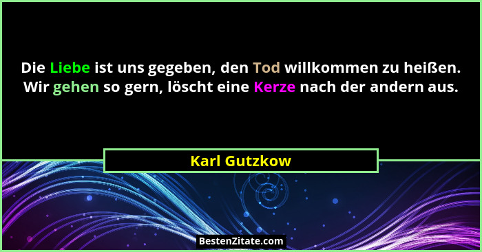 Die Liebe ist uns gegeben, den Tod willkommen zu heißen. Wir gehen so gern, löscht eine Kerze nach der andern aus.