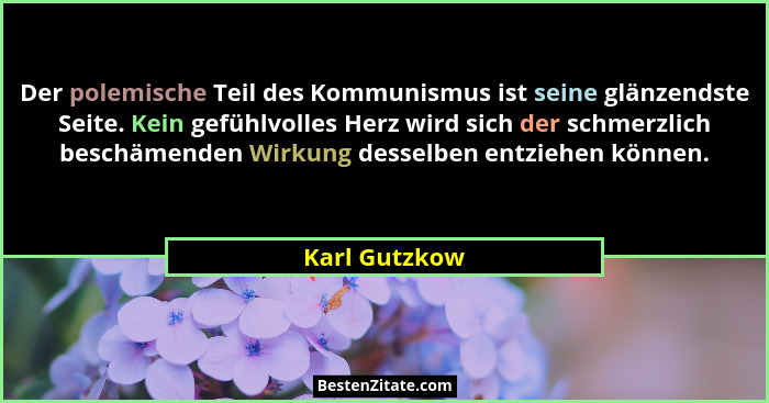 Der polemische Teil des Kommunismus ist seine glänzendste Seite. Kein gefühlvolles Herz wird sich der schmerzlich beschämenden Wirkung desselben entziehen können.