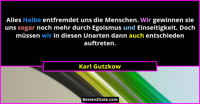 Alles Halbe entfremdet uns die Menschen. Wir gewinnen sie uns sogar noch mehr durch Egoismus und Einseitigkeit. Doch müssen wir in diesen Unarten dann auch entschieden auftreten.