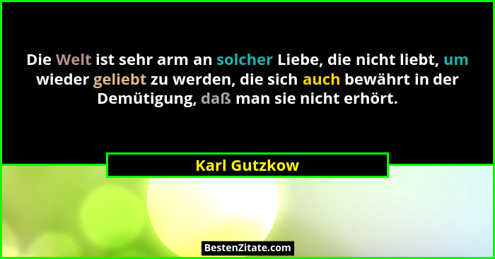 Die Welt ist sehr arm an solcher Liebe, die nicht liebt, um wieder geliebt zu werden, die sich auch bewährt in der Demütigung, daß man sie nicht erhört.