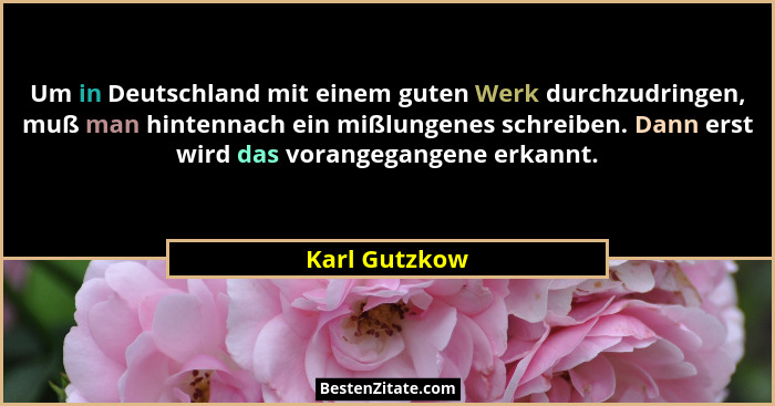 Um in Deutschland mit einem guten Werk durchzudringen, muß man hintennach ein mißlungenes schreiben. Dann erst wird das vorangegangene erkannt.
