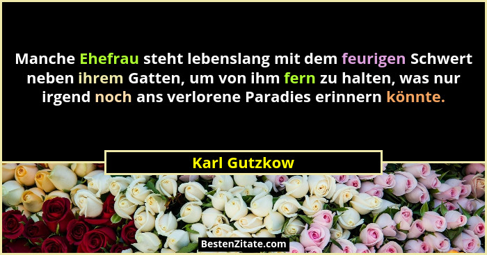 Manche Ehefrau steht lebenslang mit dem feurigen Schwert neben ihrem Gatten, um von ihm fern zu halten, was nur irgend noch ans verlorene Paradies erinnern könnte.